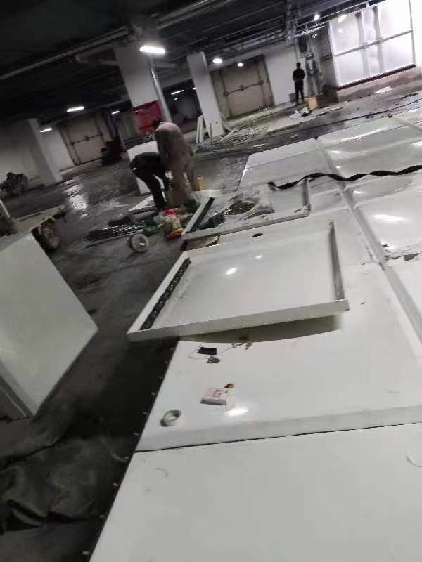 先把水泥基礎(chǔ)上平面找平,使其在同一平面上,誤差不得超過 0.5cm。