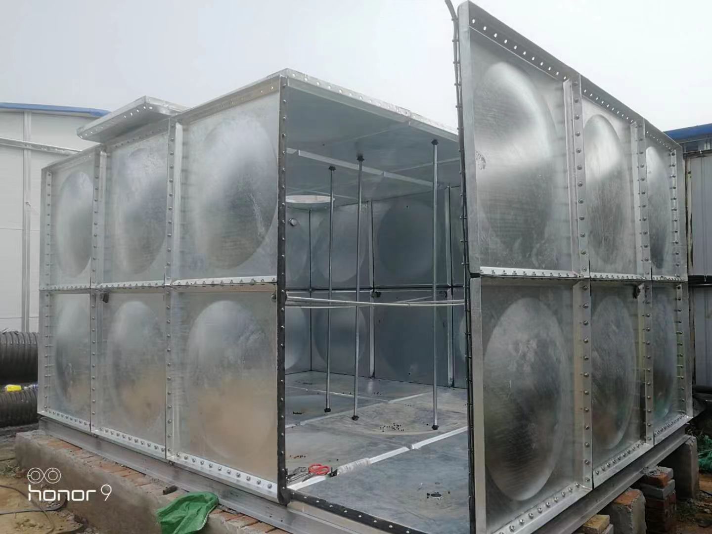 一、產(chǎn)品特點(diǎn): 選材:騰翔選用Q235邯鋼鋼板,使鍍鋅水箱的使用時間更久,并能較好防止水質(zhì)的二次污染。 結(jié)構(gòu):鍍鋅沖壓板及箱里面分布均勻的拉筋使箱體承壓均勻合理。 施工方便快捷:標(biāo)準(zhǔn)沖壓板塊1000*1000、1000*500、500*500mm隨意裝配現(xiàn)場組裝焊接,不需吊裝設(shè)備。 箱體輕盈美觀:沃迪沖壓工藝,使鍍鋅水箱箱體較大限度的承壓需要,又降低了材料厚度,滿足了箱體的美觀實用要求。